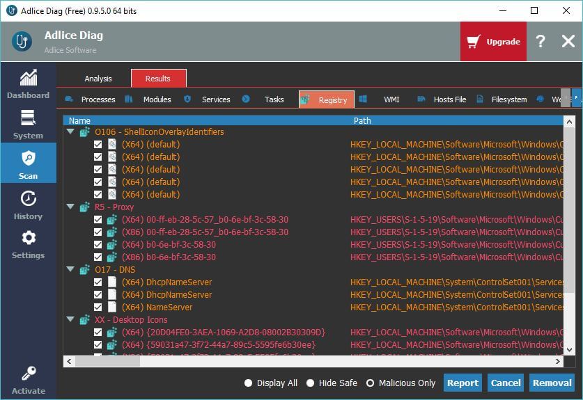 Adlice Diag anti malware comes up with an embedded full-layered Anti-malware. The scan engine will provide you with an initial classification, so it's much easier to find nasty and suspicious items.