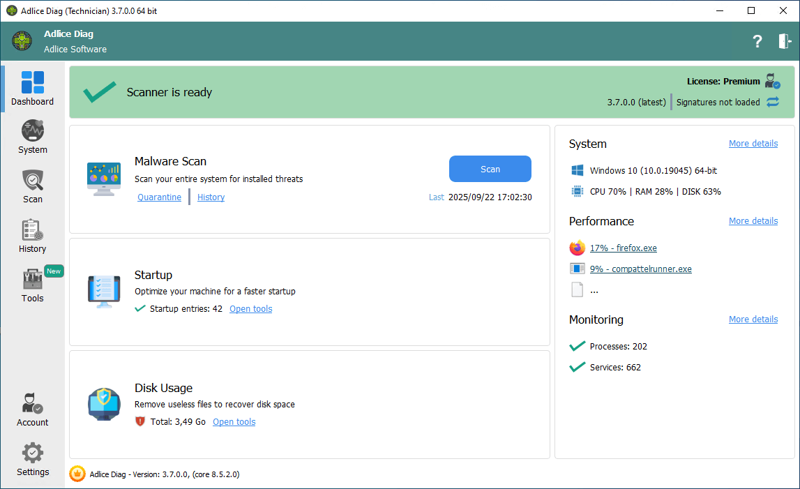 Adlice Diag's new Tools section offers powerful features like auto start entries scanning, disk optimization (soon) and cleanup (soon) to boost your system's performance and free up valuable space.