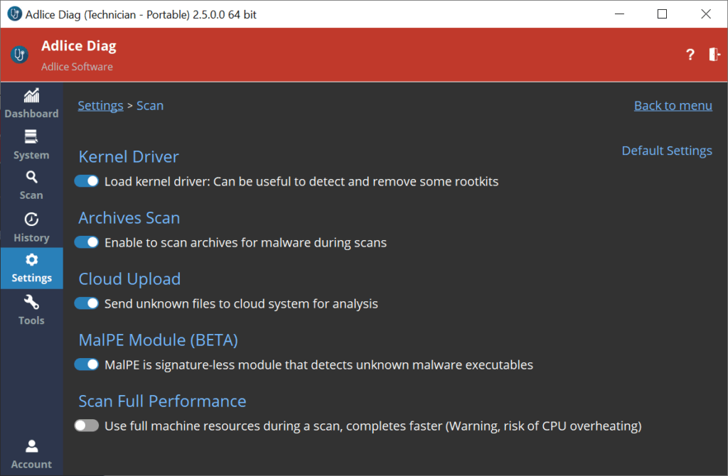 D. MalPE module: Agressive heuristics engine, Enable/Disable (BETA).
