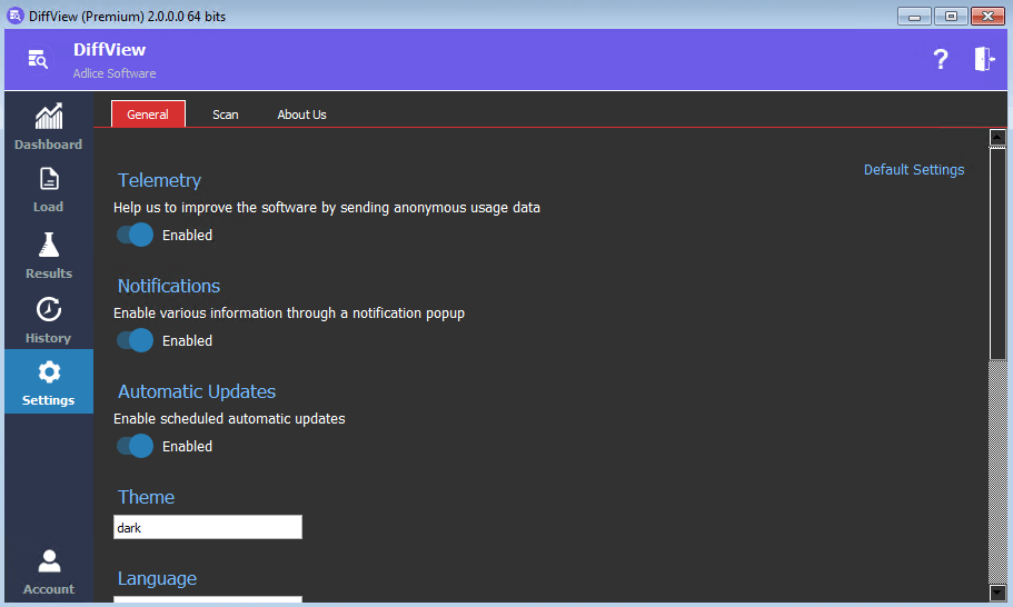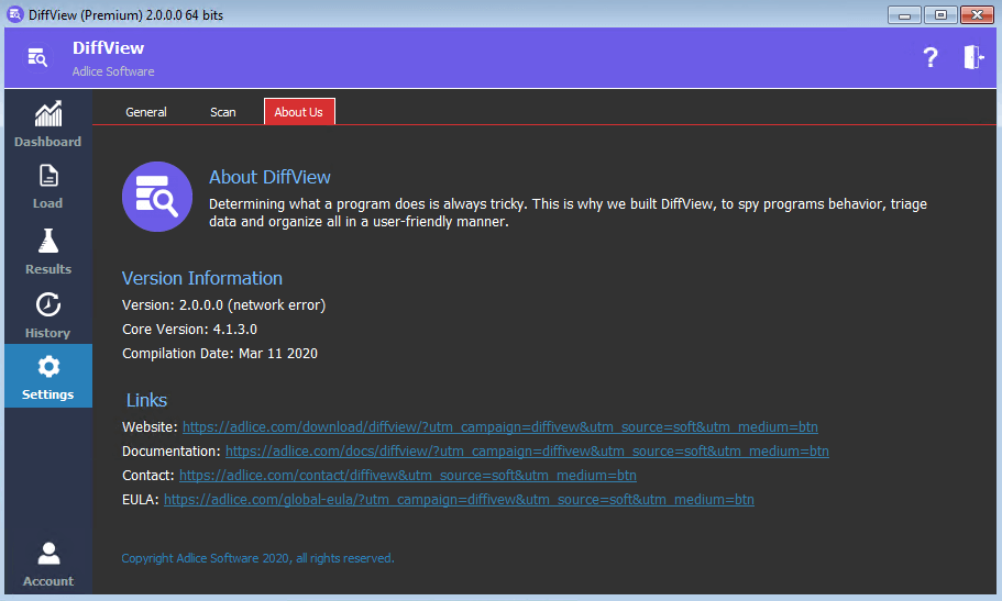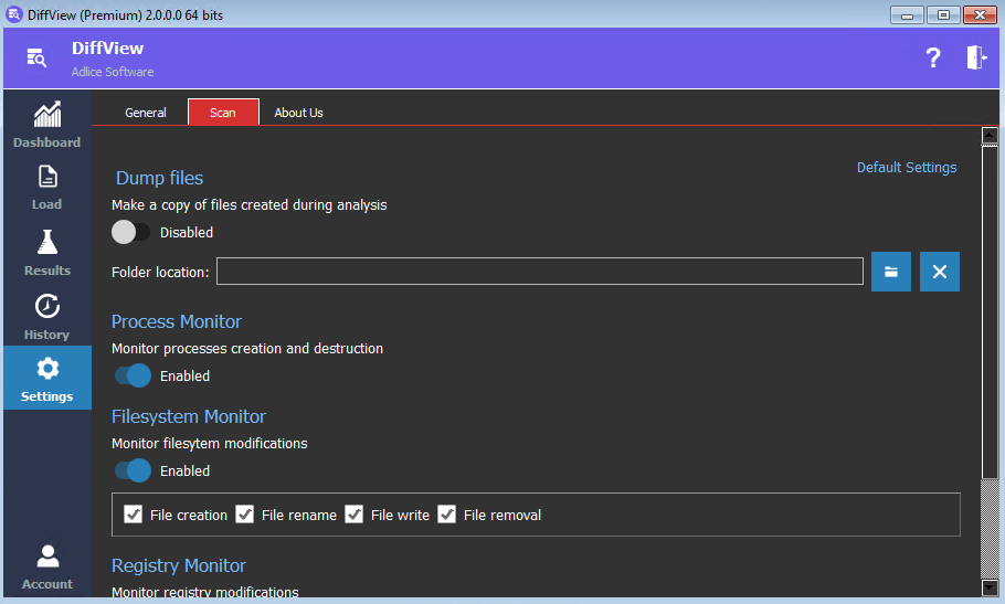 The Scan Settings section allows to change monitoring filters, and gives ability to select a folder for dumped files.