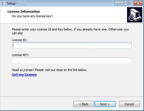 If you are using the installable version, you can register your software directly during installation by filling “License Email” and “License Key”. This method is deprecated and not present in latest versions.