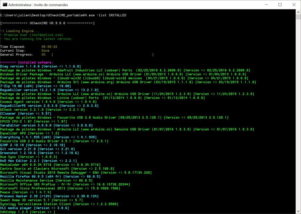 UCheckCMD.exe -list INSTALLED