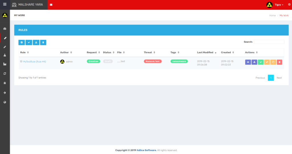 The My Work section is your “cart”, only you can see the rules inside. This is a temporary storage location where you can create future rules, experiment, and work at your own pace.