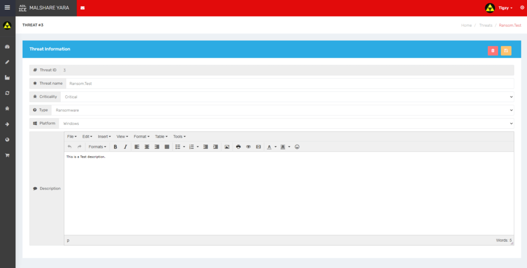 They can be searched, and modified to change the criticality level, threat type and description.