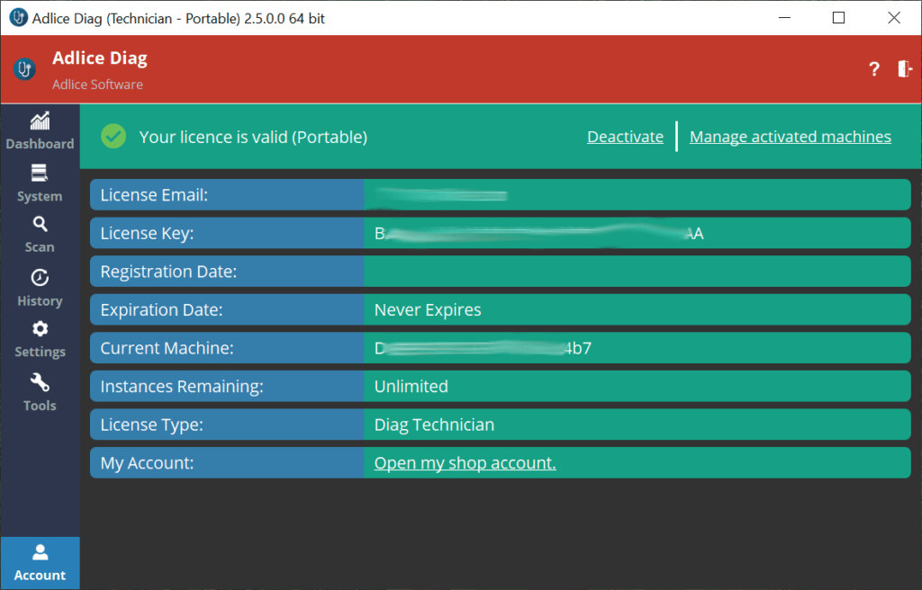 Beaucoup de nos clients sont des ateliers ou des magasins de réparation (ou d’aide en ligne). Ils collectent des machines (machines cibles) auprès de leurs clients (ou y accèdent avec un outil d’aide à distance) et ont besoin d’utiliser leur propre licence sur ces machines sans l’installer. La licence Technicien, combinée avec le fichier de configuration portable (voir ci-dessous), garantit que la clé de licence n’est jamais écrite sur la machine du client et reste la propriété du technicien.