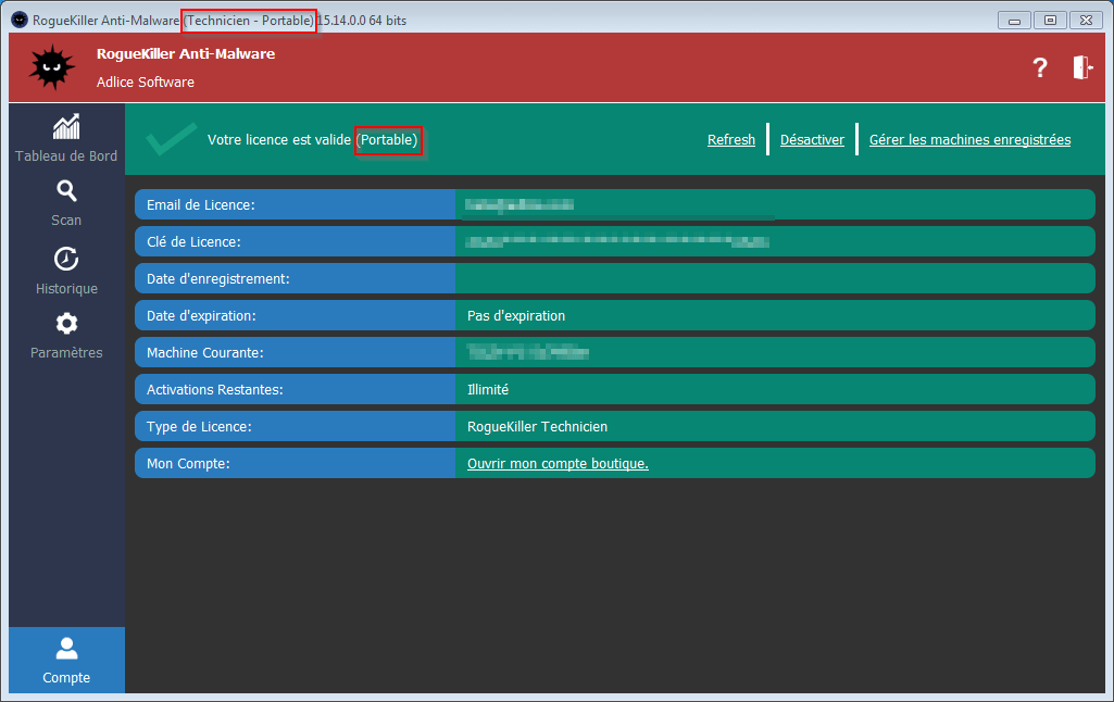 À l’intérieur du dossier, exécutez simplement la version du logiciel adaptée à l’architecture. Il devrait reconnaître la licence et l’afficher comme portable. Si une date d’expiration existe, elle sera également affichée.