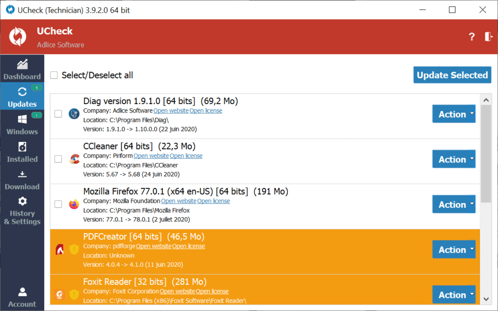Avec sa possibilité de mettre à jour tous vos logiciels -compatibles- grâce à la sélection multiple, UCheck gestionnaire de mises à jour est votre meilleur compagnon contre les exploits logiciels. Jetez un œil à notre liste de compatibilité.