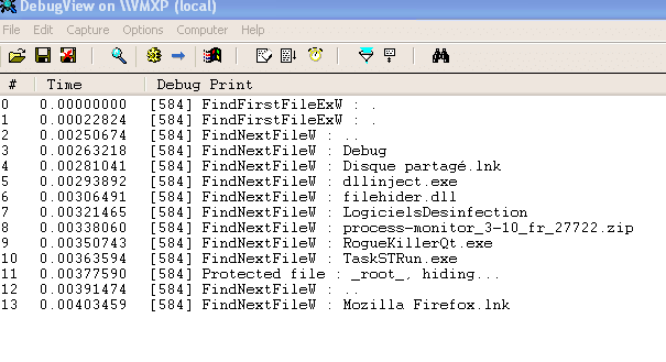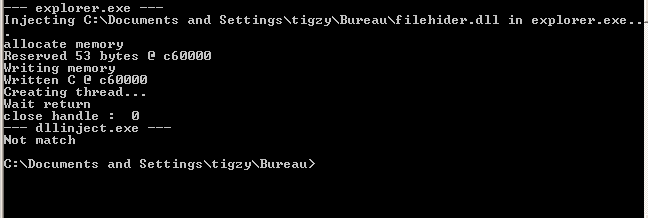 The code is self explaining. We filter calls to FindFirstFile/FindNextFile, and we compare the file names to a hard coded string. If there’s a match, we hide that entry by calling the API another time (we simply “jump” over the entry). As a result, the file will not be seen by the user.